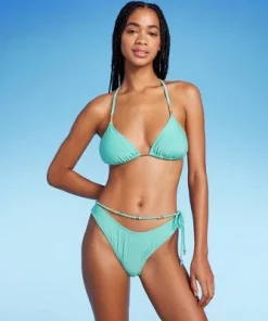 Women’s Beaded Side-Tie Extra Cheeky Extra High Leg Bikini Bottom – Wild Fable⢠Brown Lurex