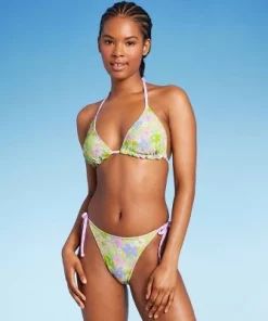 Women’s Reversible Triangle Bikini Top – Wild Fable⢠Orange Geo Tropical Print