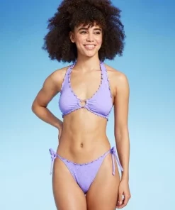 Women’s Heart Pattern Eyelet Side-Tie High Leg Extra Cheeky Bikini Bottom – Wild Fable⢠Yellow
