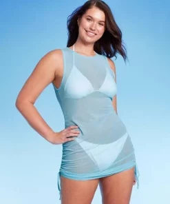 Women’s Mesh Drawstring Ruched Sleeveless Cover Up Dress – Wild Fable⢠Green Floral Print