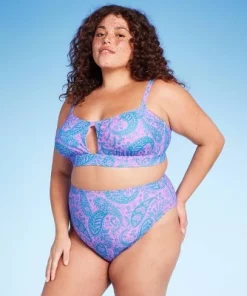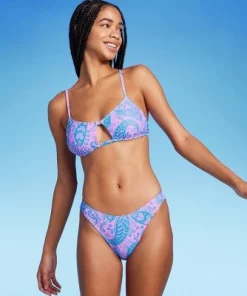 Women’s Paisley Print High Waist Medium Coverage High Leg Bikini Bottom – Wild Fable⢠Blue/Pink