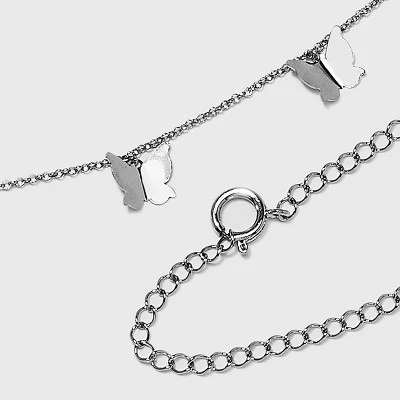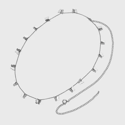 Body chain from Wild Fable⢠features a metal linked chain with butterfly charms, all with a silver finish. Comes with lobster-claw clasp for a snug fit and an extender chain for customizable length.