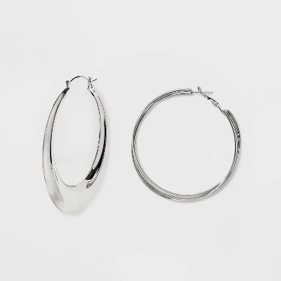 Chunky hoop earring set from Wild Fable⢠made from silver-finish steel. Includes three pairs with smooth and twisted designs. Designed with leverback closures for easy wear.