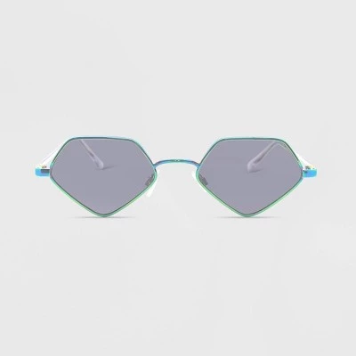 Geometric sunglasses from Wild Fable⢠with multicolored metal frame and black hexagonal lenses. UV protection helps keep your eyes shielded from harmful sun rays, and hinged temples offer convenient folding and storage.