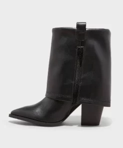 Black boots from Wild Fable⢠in an ankle height. Designed with a pointed toe and three-inch block heel. Faux-leather upper adds a classic look, while the memory foam insole and soft lining adds comfort. Zipper closure makes it easy to wear.