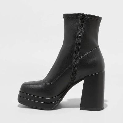 Faux-leather boots from Wild Fable⢠set on a four-inch platform heel with a textured outsole. Designed with a round closed toe in an ankle length with zippered fastening. Memory foam insoles provide all-day comfort.