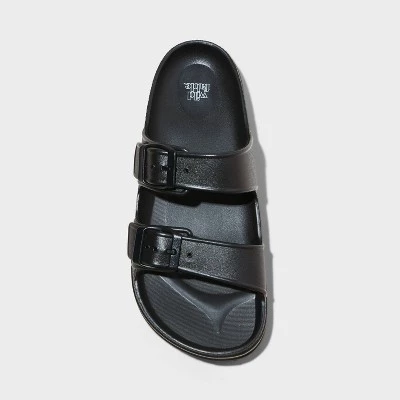 Trixie platform sandals from Wild Fable⢠with a contoured footbed. Made of plastic with an open D-toe and no-heel design. Features a double-strap upper with buckles for a customizable fit. Slip-on style with an open-back silhouette completes the look and allows for easy on and off.