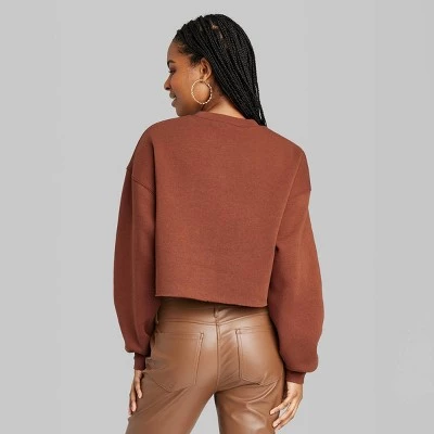 Pullover sweatshirt from Wild Fable™ in a solid hue with a crew neckline and long sleeves with dropped shoulders. Tailored in a casual fit with a cropped-cut silhouette. Raw hemline adds casual vibes, and ribbed accents on the neck and wrists complete the look for a neat look.