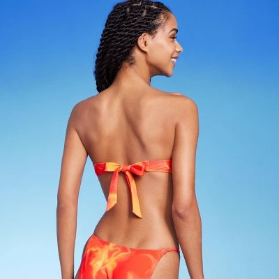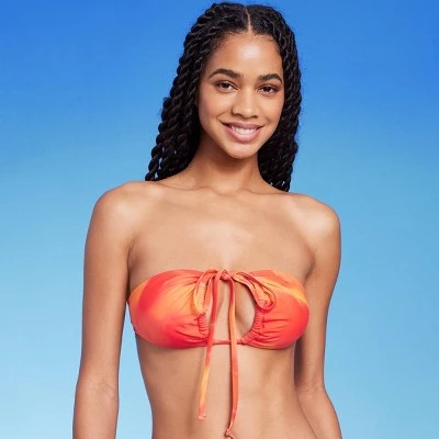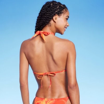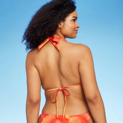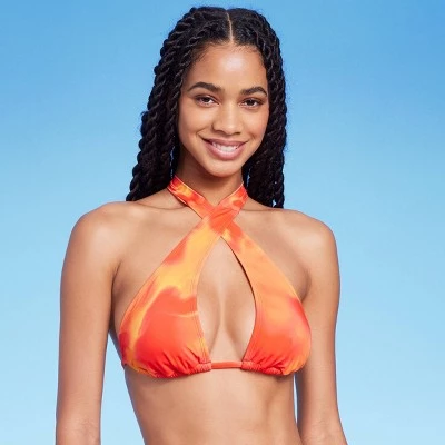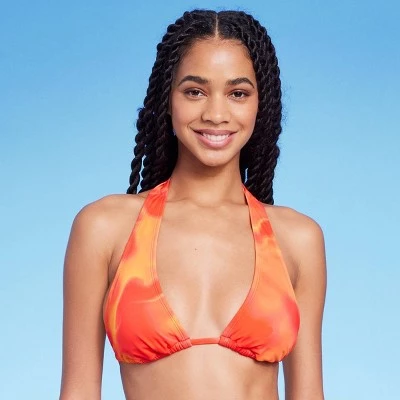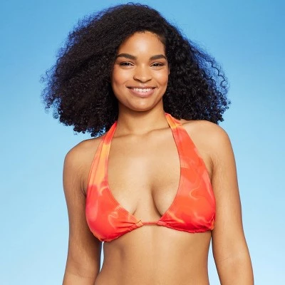 Dye-effect bikini top from Wild Fable™ in red and orange hues made with soft and stretchy fabric with partial lining for comfortable wear. Behind-the-neck and back tie offer a secure fit. Plus, it comes with removable cups for customizable coverage.
