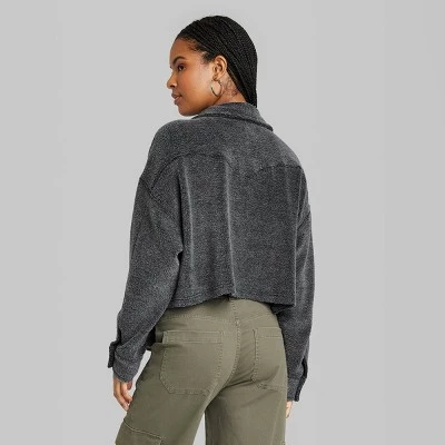 Casual-fit fleece shacket from Wild Fable™ is designed with a length that hits at the hip in a solid hue. Made from midweight fleece fabric for cozy wear. Features a collared neckline with a button-front design and a chest pocket for touches of classic style.