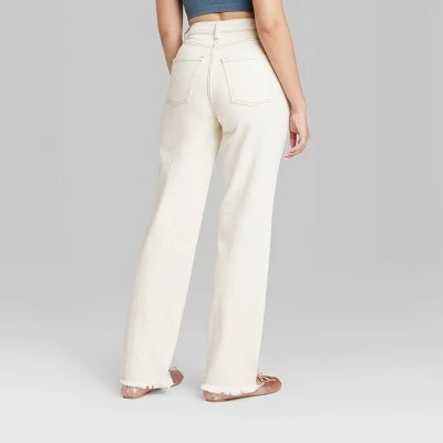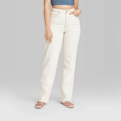 High-rise jeans from Wild Fable™ tailored in a loose straight-leg silhouette with a curvy fit. Made of cotton-blend denim with spandex for stretchy comfort. Designed with a belt-loop waistband with zip fly and button fastening for a secure fit. Five handy pockets complete the look.