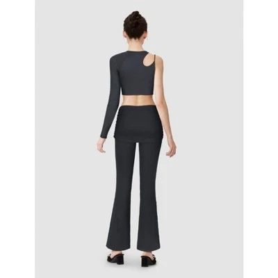 Layered Pant from Wild Fable™ in a solid hue. Flare leg pant layered with an attached ruched mini length skirt overlay. Made from lightweight stretch jersey fabric for body hugging yet comfortable wear that moves with you. High rise design hits right at the waist and features pull-on design.
