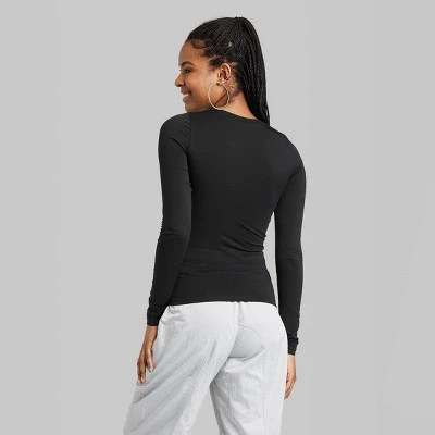 Long-sleeve T-shirt from Wild Fable™ tailored in a slim-fit silhouette with a long length. Made from 2×2 rib fabric with a hint of spandex for a cool feel and stretchy comfort. Designed in a solid hue with a seamless construction and a crew neckline.