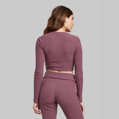 Cozy ribbed T-shirt from Wild Fable™ in a solid color. Tailored in a slim-fit silhouette with a cropped length and sculpting yoked hem. Boasts a year-round, stretchy fabric construction for comfortable wear. The flattering V-neckline, long sleeves and pullover style complete the look.