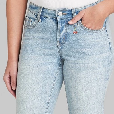 - Low-rise bootcut jeans in medium wash