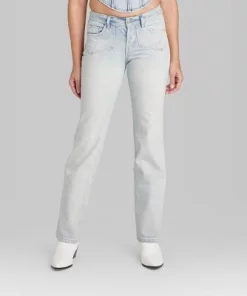 Light-wash bootcut jeans from Wild Fable™ with a low-rise, full-length silhouette. Crafted from cotton-rich denim fabric with spandex for comfortable wear that moves with you. Tailored with bootcut legs and a regular fit. Belt-loop waistband with a zip fly and button fastening offers a secure fit. Functional five-patch pocket design completes the look.