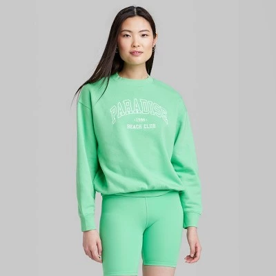 Long-sleeve graphic sweatshirt from Wild Fable™ designed in an oversized fit with a mid length. Made from midweight cotton-blend fabric for all-day cool comfort. A crew neckline plus a ribbed hem and cuffs complete the snug look.