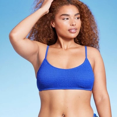 Solid-color bralette bikini top from Wild Fable™ features a smocked design. Soft and stretchy fabric offers comfort, and back hook helps keep it secure. Adjustable straps lend a customizable look.