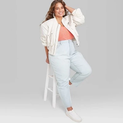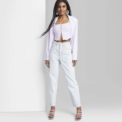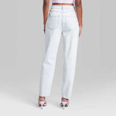 Super-high-rise jeans from Wild Fable™ in ultra-light blue wash with an ankle length and destructed accents. Crafted from cotton-rich denim fabric with spandex for comfortable wear that moves with you. Tailored in a tapered-leg silhouette with a curvy fit. Belt-loop waistband with a zip fly and button fastening offers a secure fit. Classic five-pocket design completes the look with space for stashing small essentials.