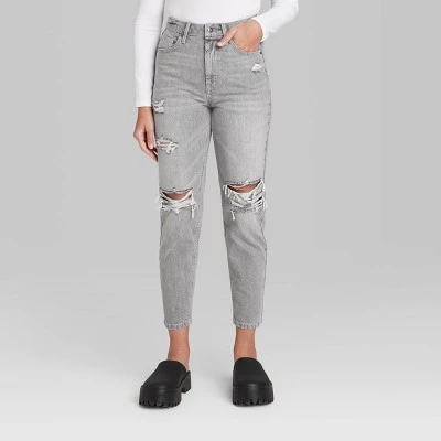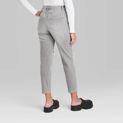 Super-high-rise jeans from Wild Fable™ in gray wash with an ankle length and destructed accents. Crafted from cotton-rich denim fabric with spandex for comfortable wear that moves with you. Tailored in a tapered-leg silhouette with a regular fit. Belt-loop waistband with a zip fly and button fastening offers a secure fit. Classic five-pocket design completes the look with space for stashing small essentials.