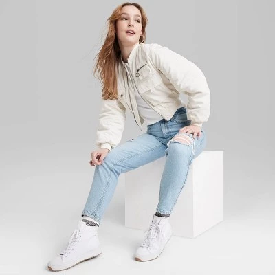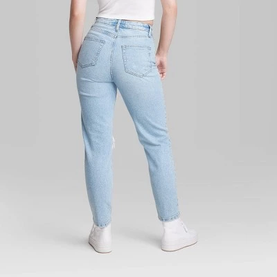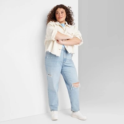Super-high-rise jeans from Wild Fable™ in light blue with an ankle length and destructed accents. Crafted from cotton-rich denim fabric with spandex for comfortable wear that moves with you. Tailored in a tapered-leg silhouette with a regular fit. Belt-loop waistband with a zip fly and button fastening offers a secure fit. Classic five-pocket design completes the look with space for stashing small essentials.